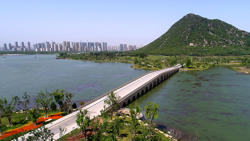崇正橋,位于華山南側(cè),連接華山及華山湖南岸,總長(zhǎng)約 96 米,為三孔拱橋,是華山濕地公園的重要門戶。煙雨橋,位于華山東側(cè),橋梁全長(zhǎng)約 200米,為 21 孔拱橋,狀若長(zhǎng)虹臥波,是華山濕地公園的優(yōu)美名片。