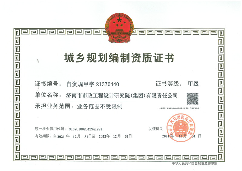 濟(jì)南市政設(shè)計(jì)集團(tuán)新增勘察、公路、規(guī)劃資質(zhì)甲級(jí)